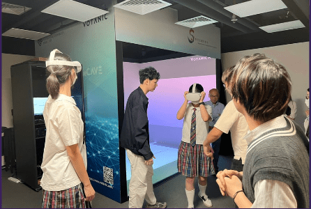 During the visit, students were introduced to Virtual Reality (VR) technology in the CAVE.