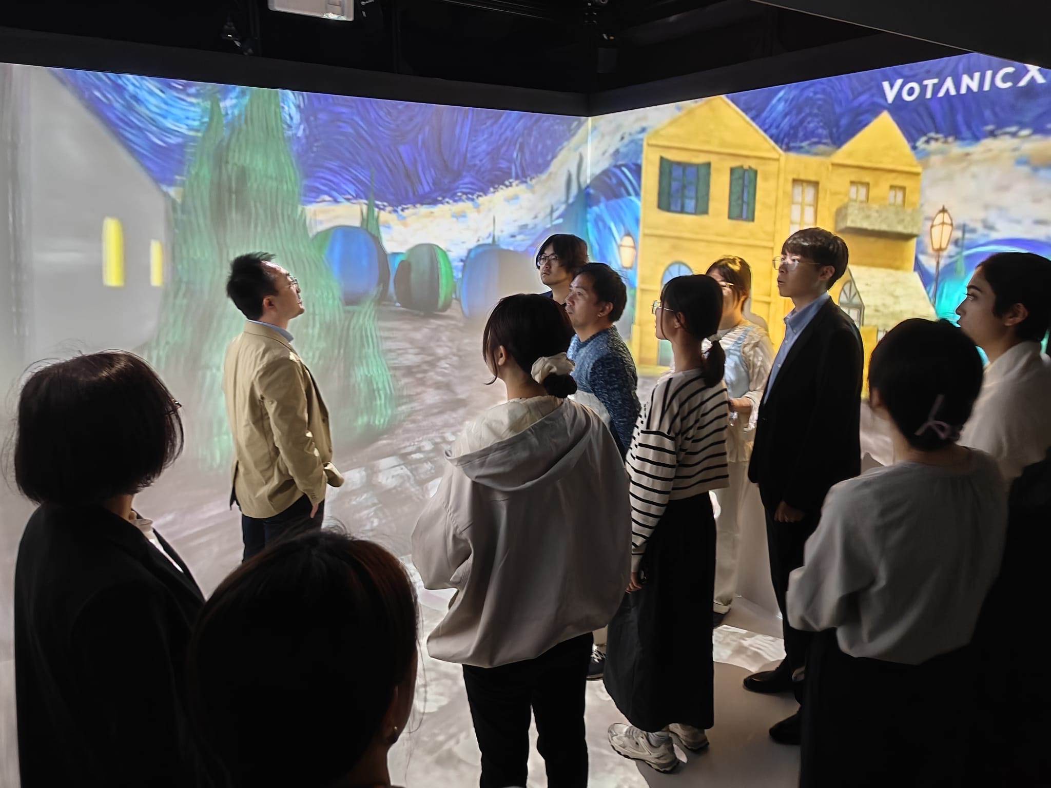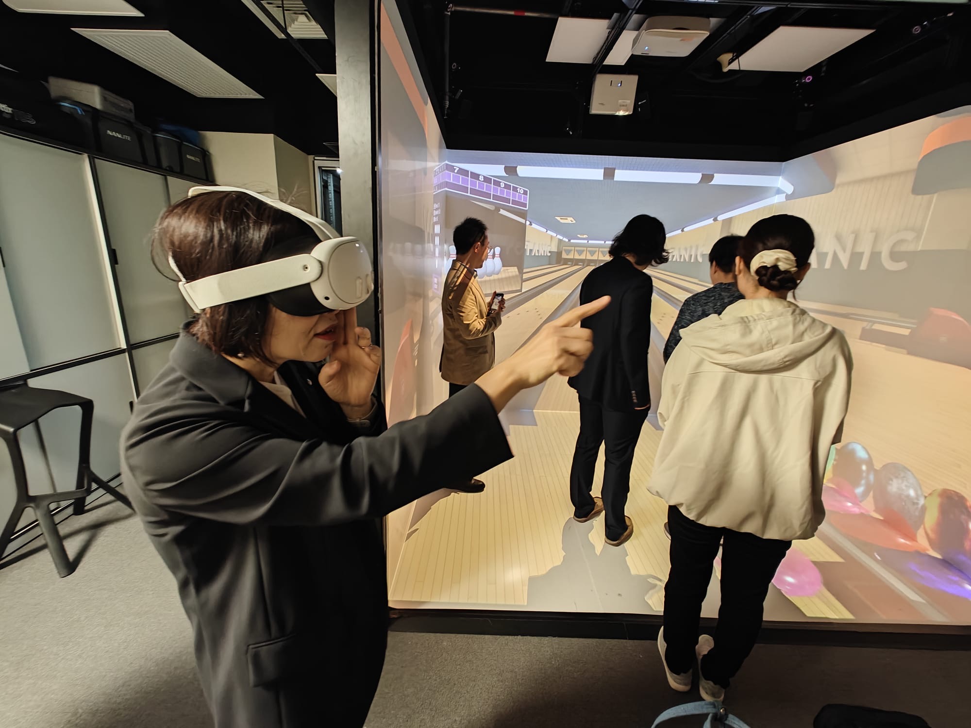 During the visit, the guests engaged in hands-on experiences with state-of-the-art equipment, including the immersive interactive technology featured in the CAVE (Cave Automatic Virtual Environment). These technologies demonstrated how immersive and interactive tools can enhance teaching and learning in the social sciences.