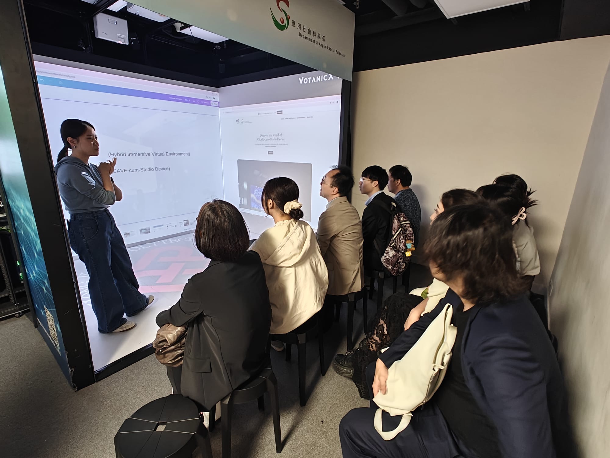 On November 25, 2024, the CSD team had the pleasure of hosting a guided visit for distinguished guests from Tohoku University, Japan. The visit provided an opportunity to showcase PolyU’s and APSS’s (Department of Applied Social Sciences) cutting-edge technological innovations in social sciences pedagogies.